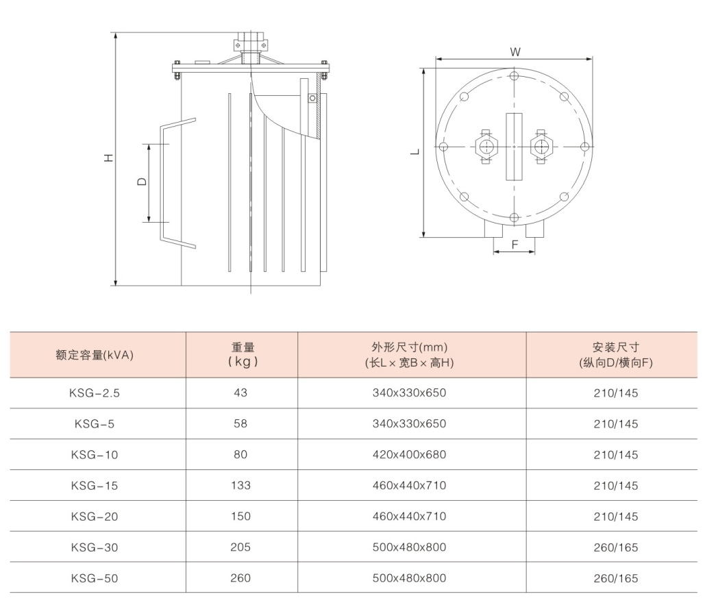 KSG系列矿用型干式变压器(以下简单称变压器)适用于矿井下有瓦斯、甲烷、煤尘但无爆炸危险环境下使用。在交流50Hz/电压至1200V以下的供电线路中,为动力设备、煤电钻或照明等相关用电器提供电源。